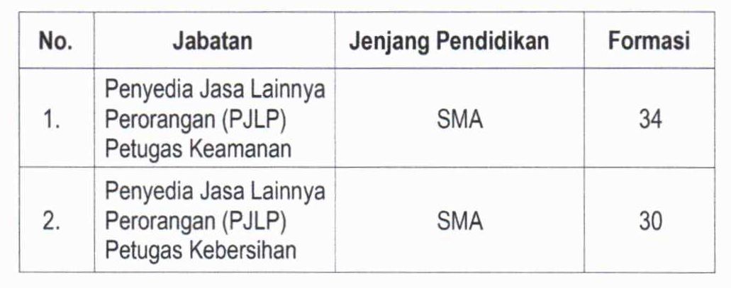 CALON PEGAWAI PENYEDIA JASA LAYANAN PERORANGAN (PJLP) PETUGAS KEAMANAN DAN PETUGAS